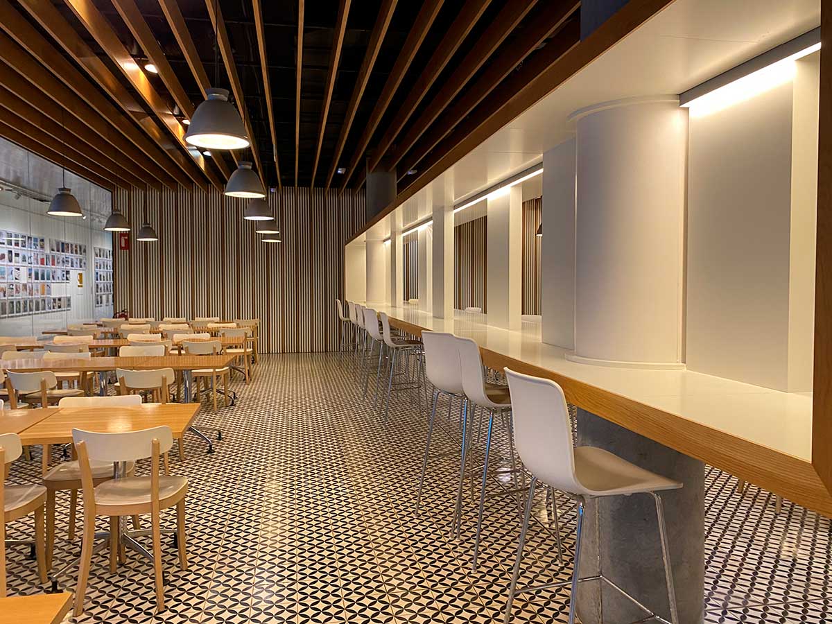 Cafeteriastephanie2024-07-17T18:02:20+02:00 CafeteriaCombinació de punts de llums a diferents alçades per dotar d’una il·luminació de confort ambient a les zones de descans. Obra certificada amb Luxòmetre i equip HT.